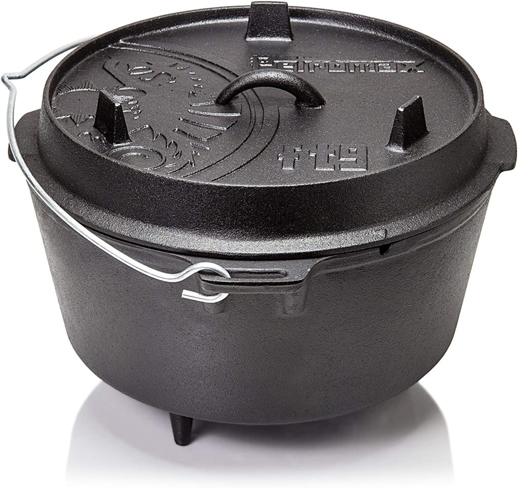 Für jedes Outdoorabenteuer sollte auch ein guter, gusseiserner Feuertopf für das genüssliche, wohlverdiente, warme Essen am Abend, welches über dem Lagerfeuer gekocht werden kann, dabei sein.